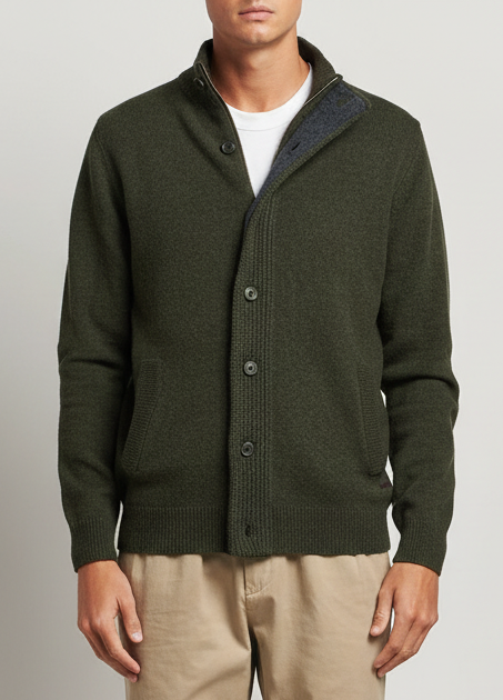 Barbour Essential Patch Cardigan - Premium Lammull. Stickad cardigan i ren lammull med eleganta Alcantara-armbågslappar. Klassisk passform som enkelt kan bäras över skjortor och t-shirts. Perfekt lagerplagg för svalare dagar.