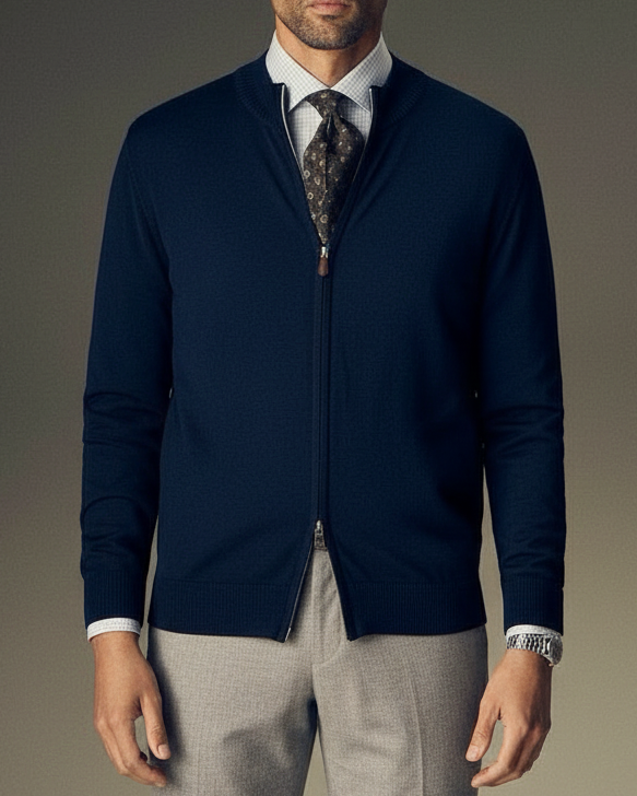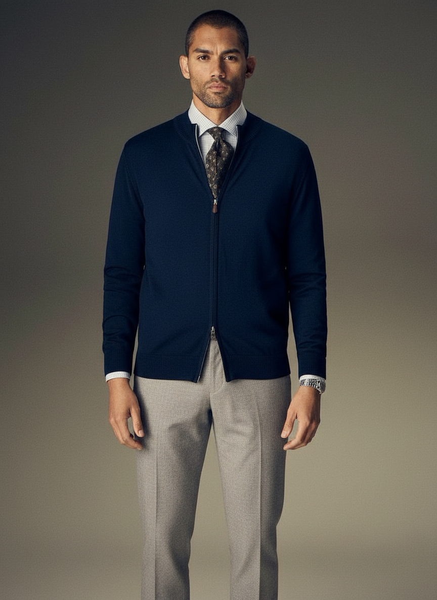 Stenströms Zip Cardigan är en klassisk och mångsidig herrtröja i 100% merinoull – ett material som både värmer och andas. Tröjan har en halv dragkedja fram och en ribbstickad krage som ger extra komfort och värme runt halsen. En tidlös merinoullströja för herr som passar året runt och enkelt kan stylas med skjorta för en elegant kontorslook eller med jeans och väst för en avslappnad helgstil. Ett nyckelplagg i garderoben som kombinerar kvalitet, komfort och stil.
