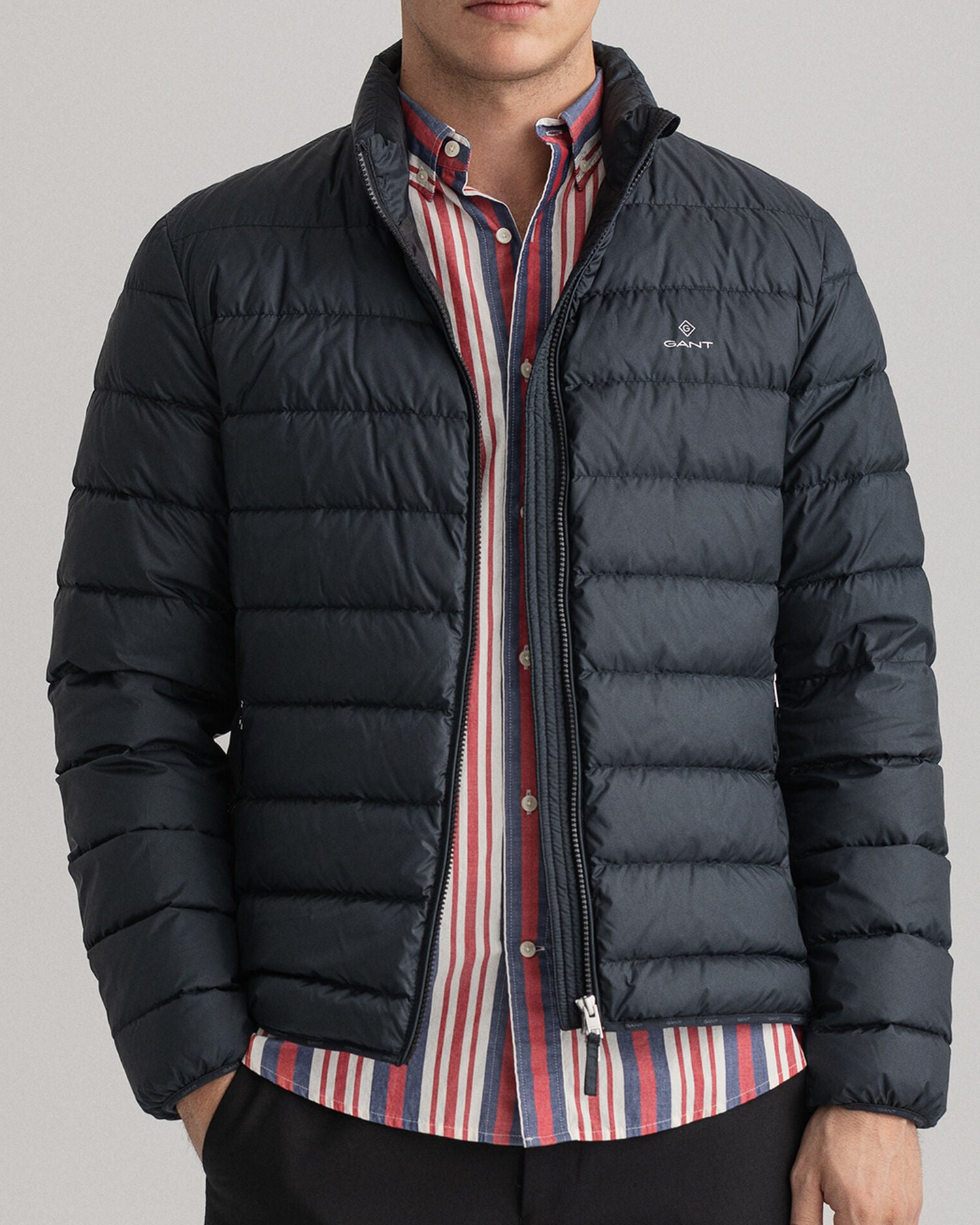 GANT Light Down Jacket lätt dunjacka. En tidlös lätt dunjacka från GANT med smal passform. Denna klassiska modell är perfekt när temperaturen sjunker och kan bäras som den är tidigt på våren eller under en yllejacka på vintern för extra värme. Värmande dunfyllning ger komfort ner mot 10 minusgrader.