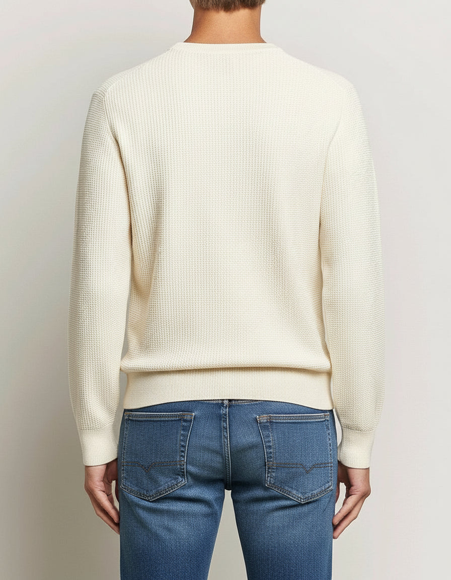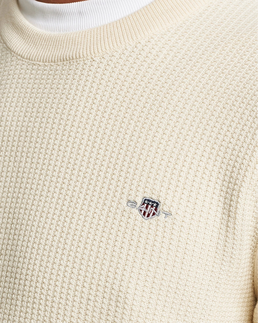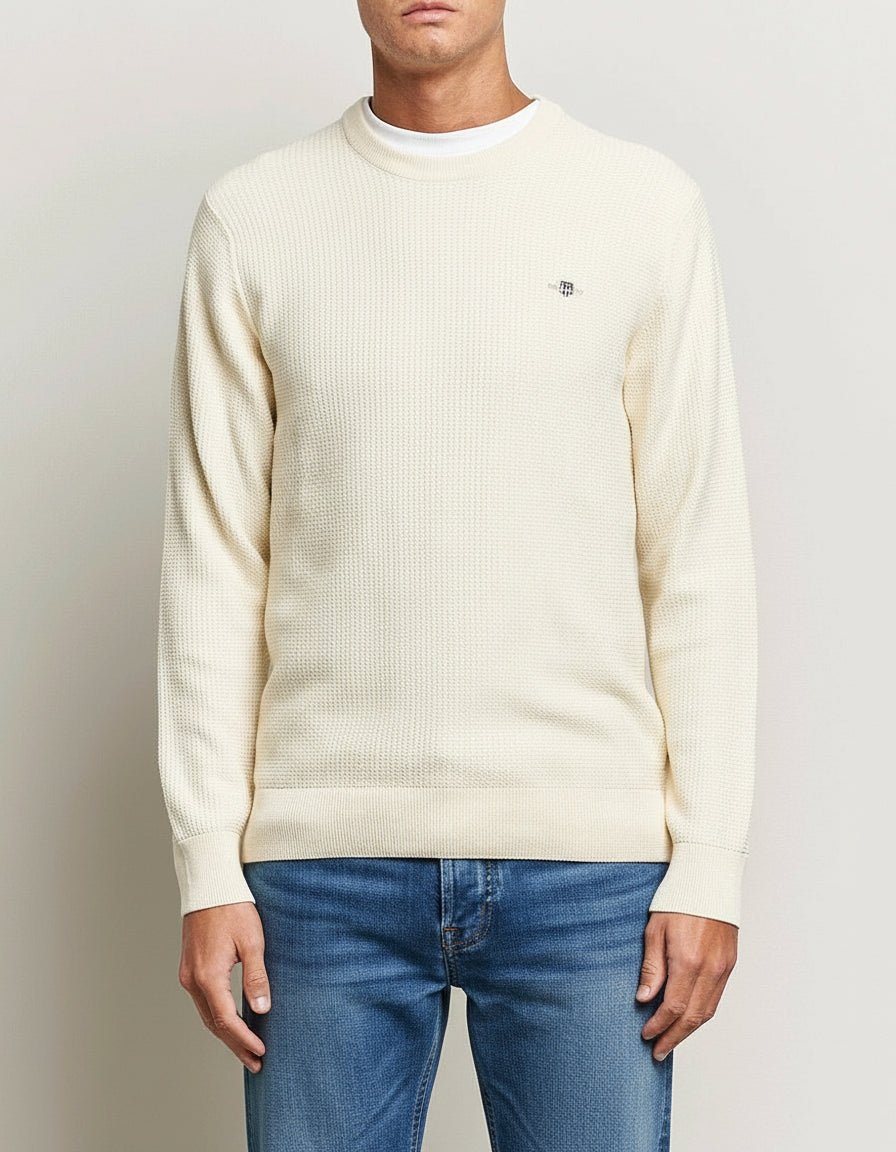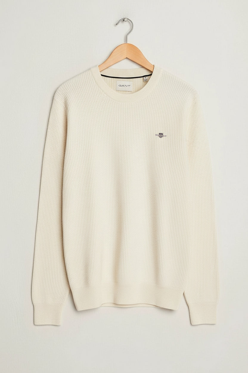 GANT Textured Cotton C-Neck stickad tröja. En klassisk stickad tröja från GANT med rund hals och texturerad yta. Denna tidlösa basmodell i bomull kombinerar komfort med GANTs karakteristiska preppy stil. Den strukturerade bomullskvaliteten ger en stilren look som passar både till vardag och lediga tillfällen.