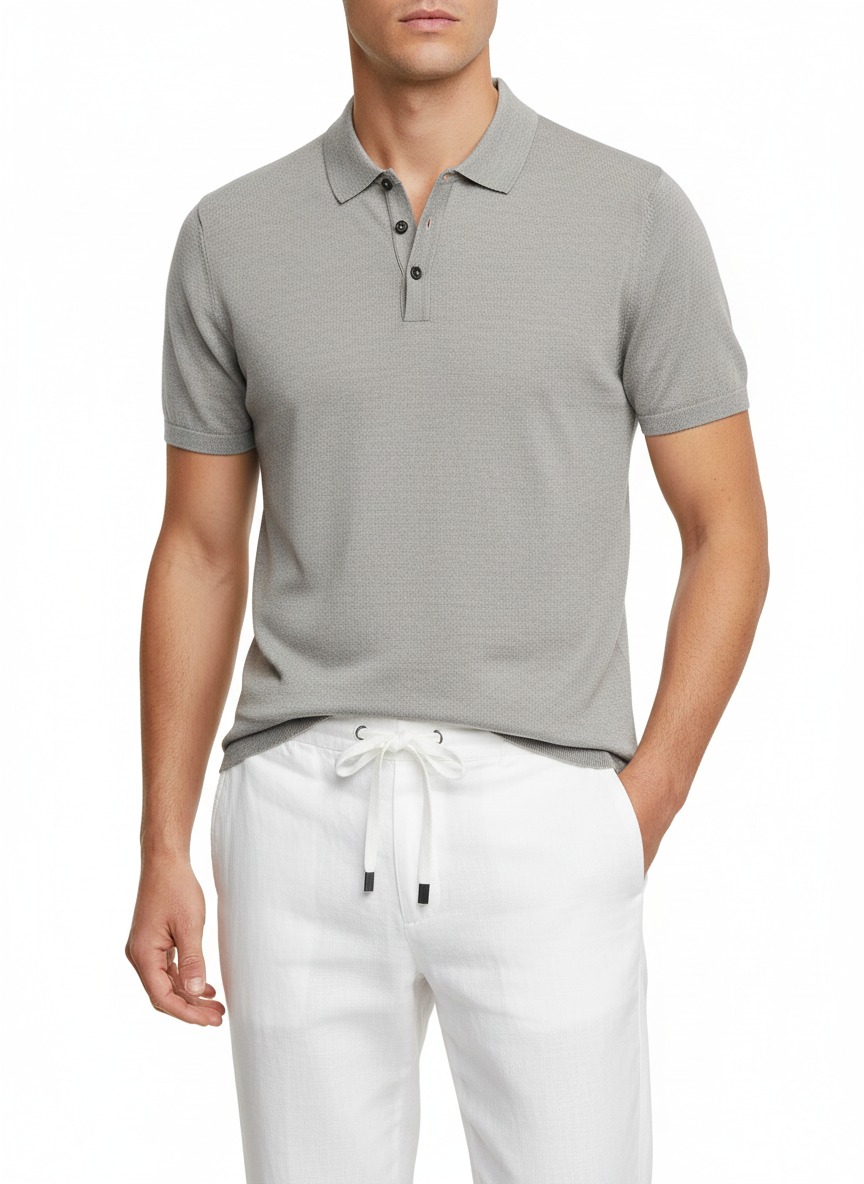 SAND Rico Linen Polo Shirt - Grey