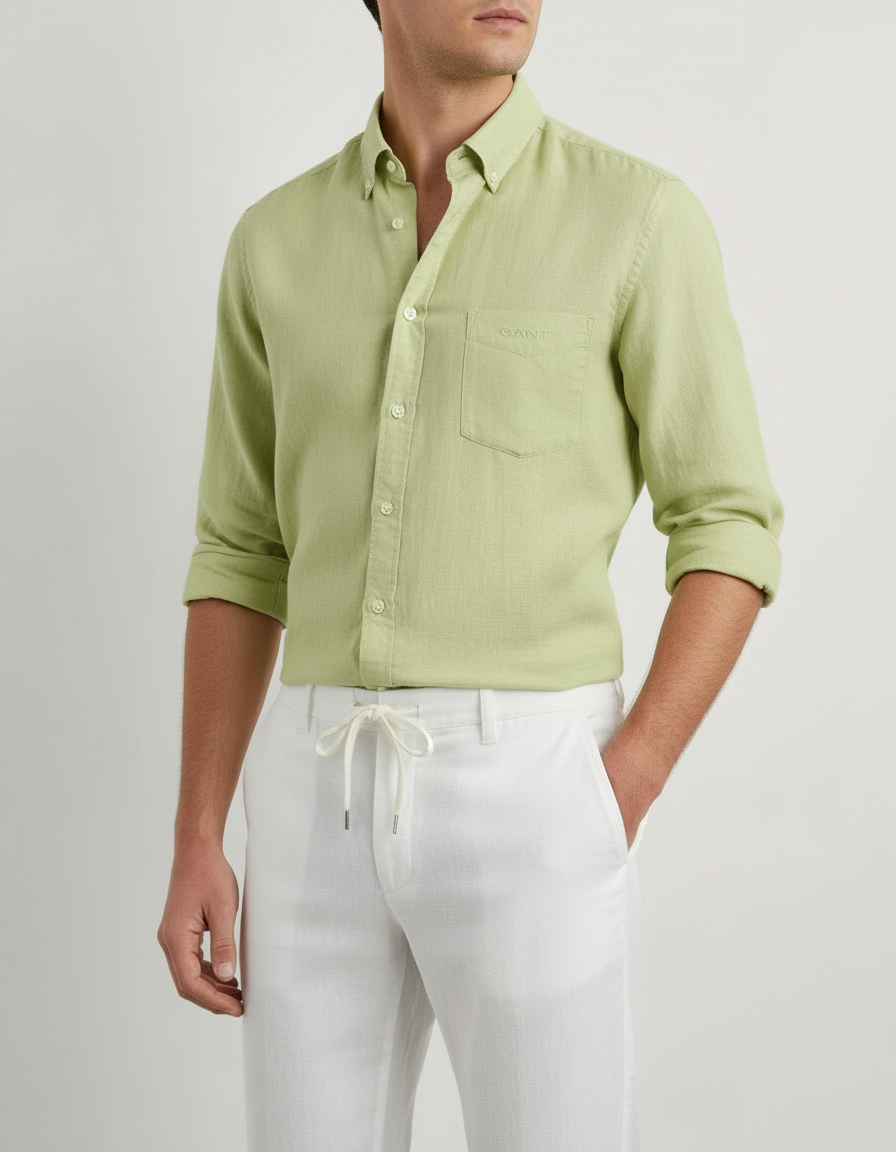 GANT Reg GMNT Dyed Linen Shirt. Skön och luftig linneskjorta från GANT. Perfekt för varma dagar med sin andningsaktiva linnefiber som håller dig sval och bekväm.