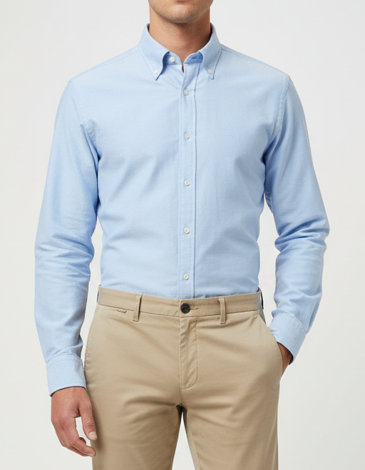 Oxfordskjorta i en tvättad Oxford bomull. Detaljerad med enkla manschetter, förlängd button down-krage och knappar i pärlemor. Bär den till ett par kostymbyxor för en modern klassisk stil eller till ett par jeans för en casual look. Rulla upp ärmarna för en mer avslappnad stil.