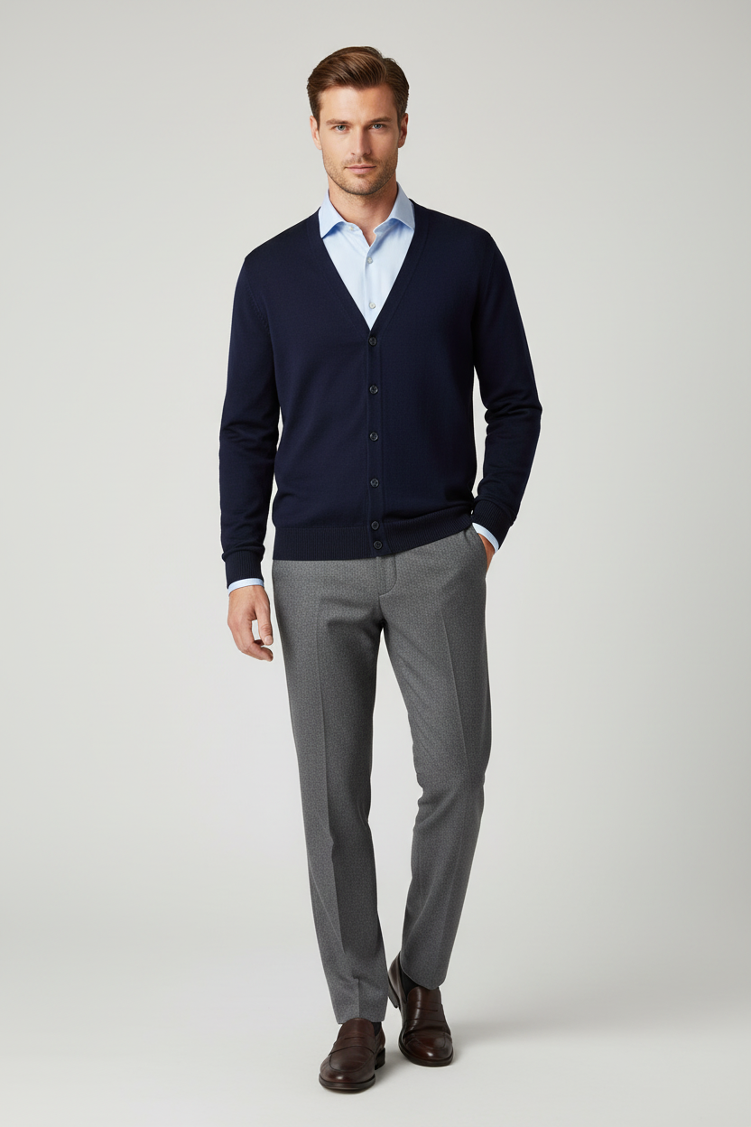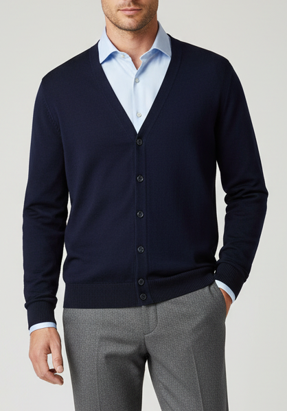 Stenströms V-ringad Kofta i Merinoull är en elegant och mjuk herrkofta tillverkad i 100% merinoull som både värmer och andas. Den har en klassisk v-ringning och stängs med exklusiva pärlemorknappar som ger ett sofistikerat intryck. En tidlös merinoullskofta för herr som kombinerar komfort, kvalitet och stil – perfekt för både arbete och lediga dagar.