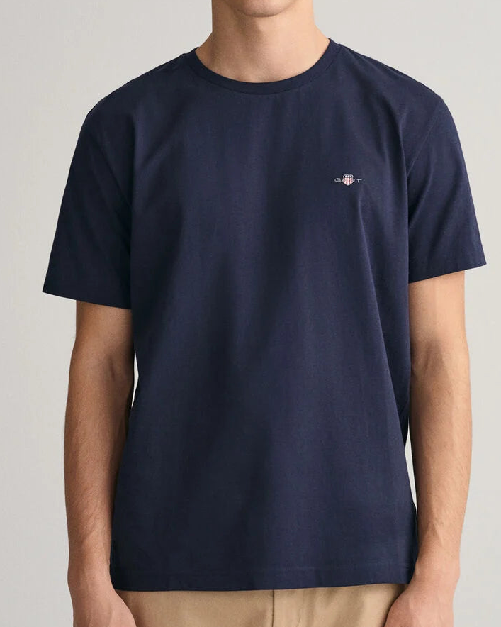 GANT Reg Shield SS T-Shirt. En klassisk t-shirt från GANT med den ikoniska broderade sköldlogotypen på bröstet. Denna tidlösa basmodell i melerad bomullskvalitet kombinerar komfort med GANTs karakteristiska preppy stil. Den mjuka bomullen ger en behaglig känsla mot huden och den melerade färgen gör den lätt att matcha med allt i garderoben.