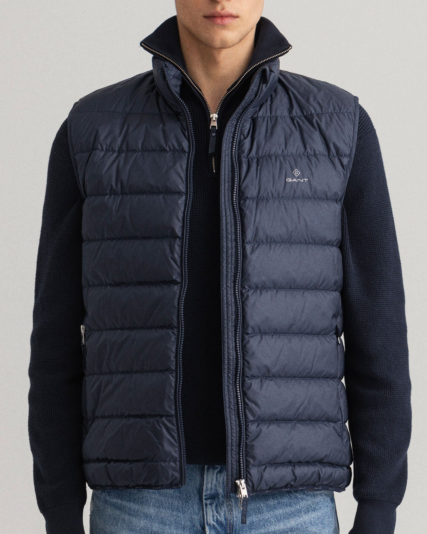 GANT Light Down Vest lätt dunväst. En tidlös lätt dunväst från GANT som är en bästsäljare som återkommer varje säsong. Denna klassiska modell med smal passform är otroligt lätt vilket gör den perfekt för resan och för lager på lager. Bär den som den är tidigt på hösten eller under en yllejacka på vintern för extra värme.