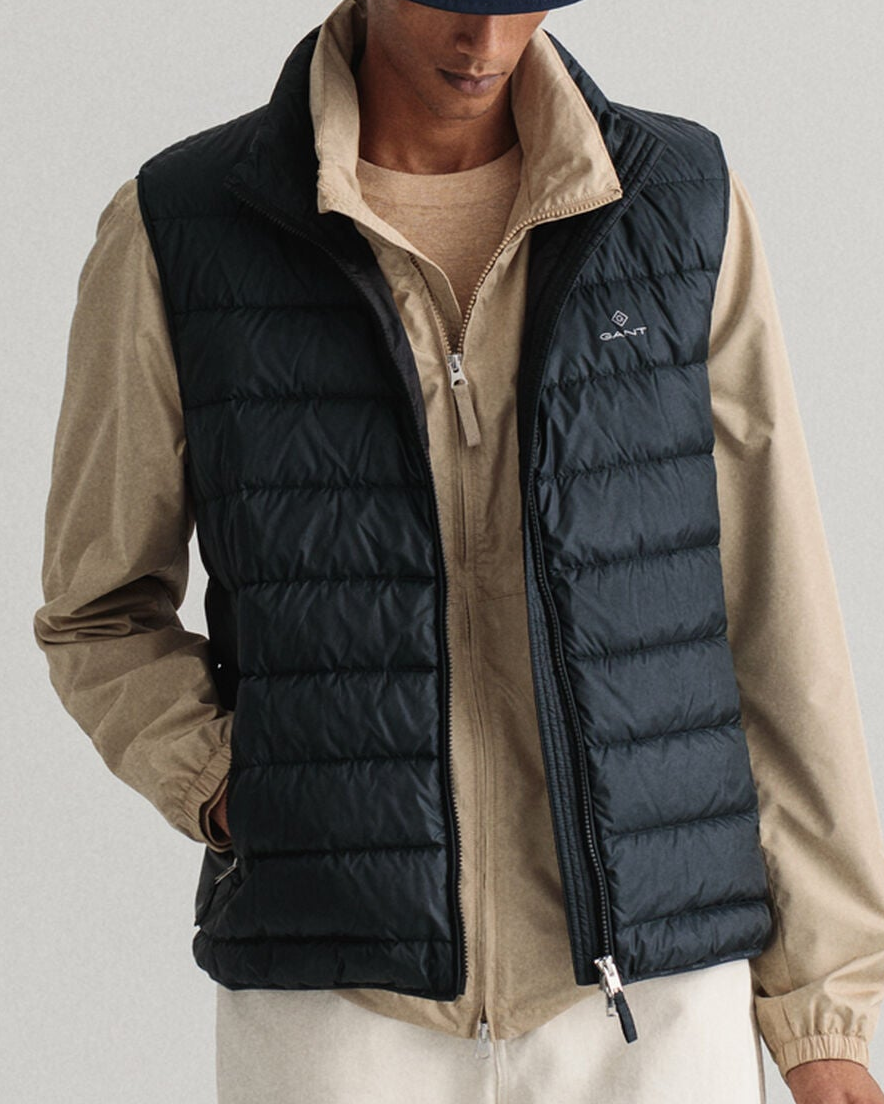 GANT Light Down Vest lätt dunväst. En tidlös lätt dunväst från GANT som är en bästsäljare som återkommer varje säsong. Denna klassiska modell med smal passform är otroligt lätt vilket gör den perfekt för resan och för lager på lager. Bär den som den är tidigt på hösten eller under en yllejacka på vintern för extra värme.