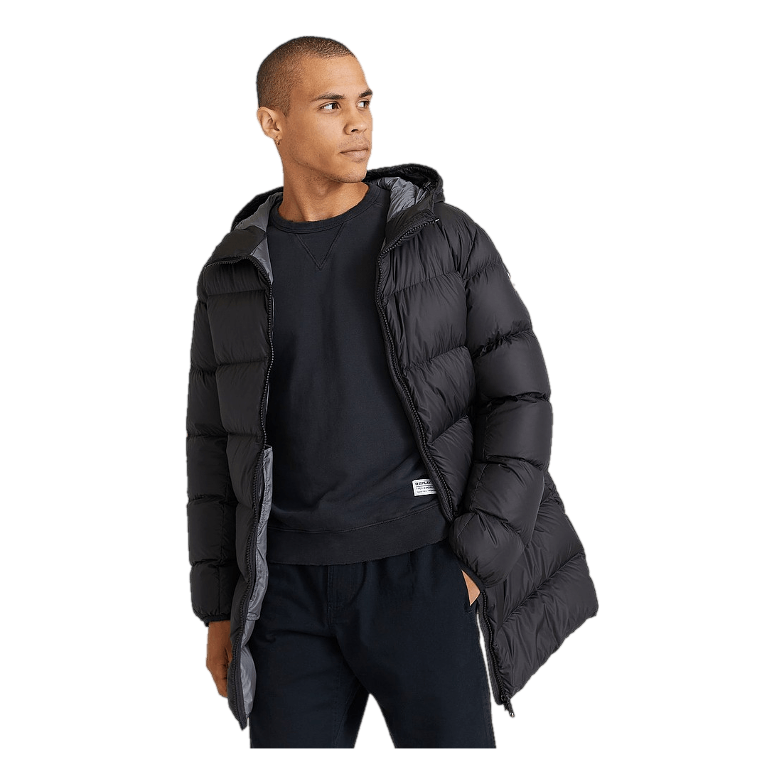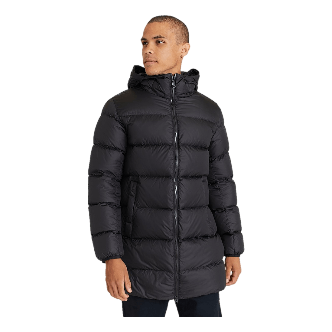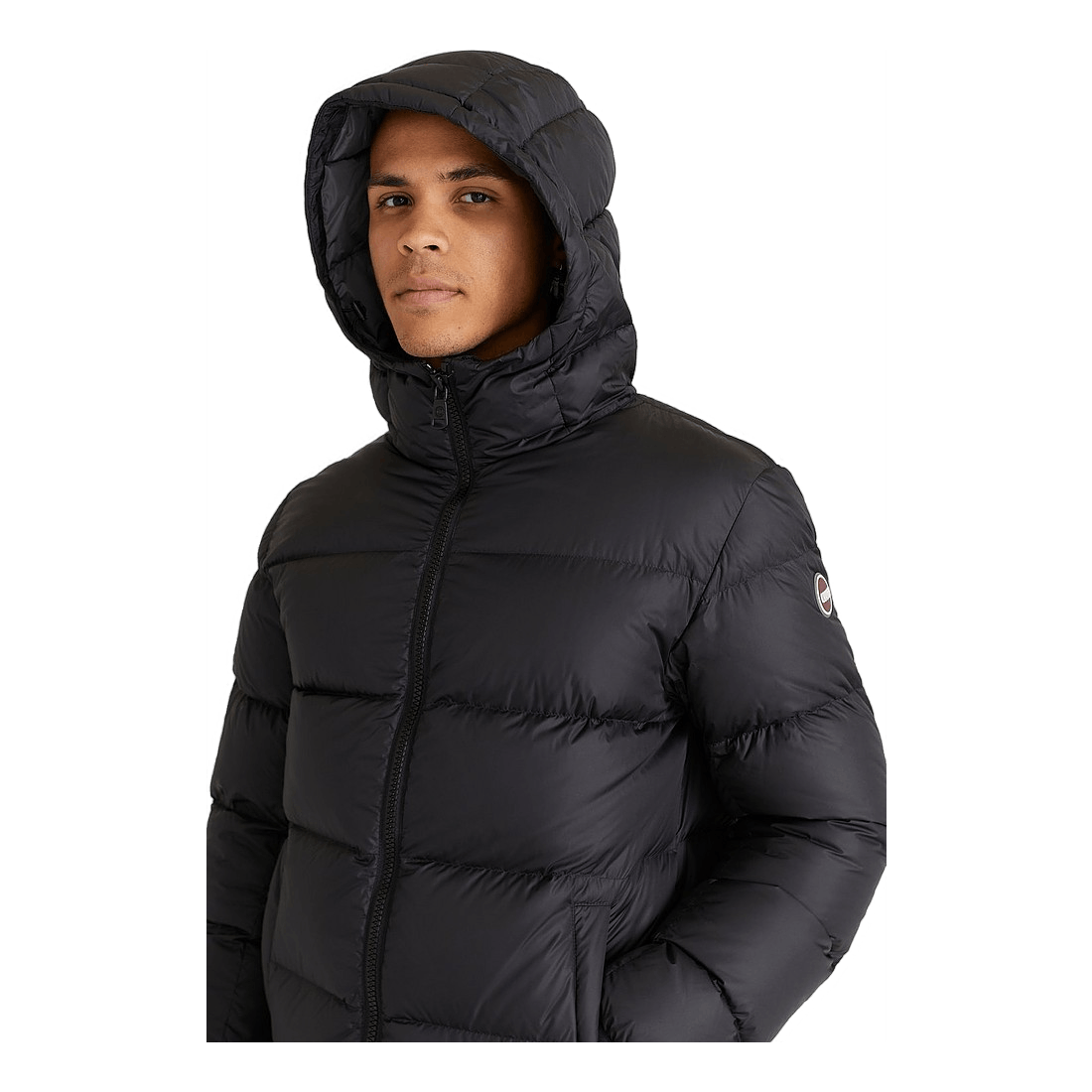 Colmar Long Down Puffer Jacket som är fodrad i dun och har resårkanter runt ärmsluten och nederkanten samt en justerbar dragsko runt luvan. På ena ärmen sitter en gummipatch med en logotyp. Två sidofickor finns som stängs med hjälp av en dragkedja.