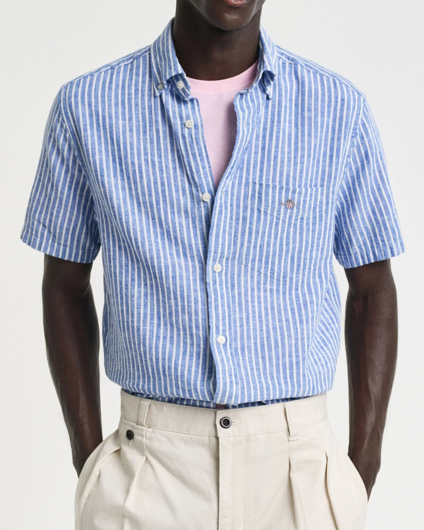 GANT Reg Cotton Linen Stripe SS Shirt. Kortärmad skjorta i linne- och bomullsblandning från GANT. Kombinationen av linne och bomull ger en skjorta som både andas och behåller sin form.