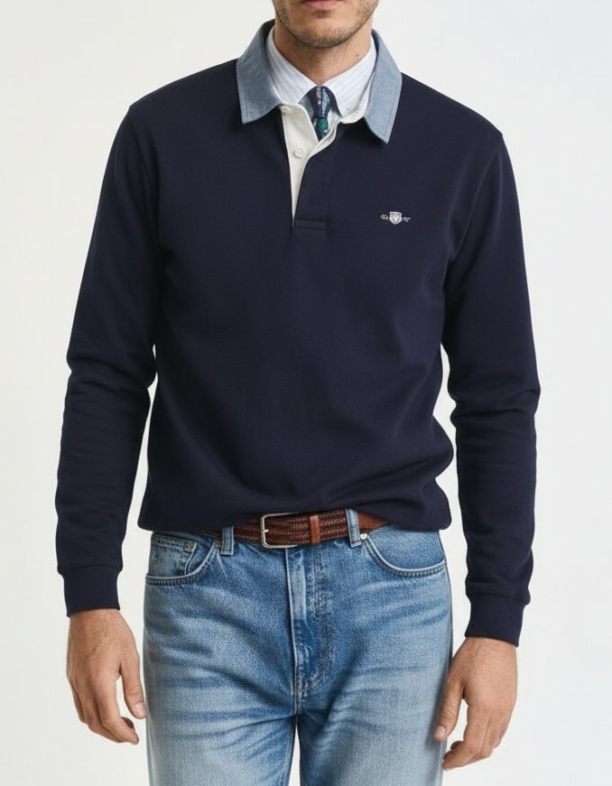 GANT Heavy Rugger Chambray Collar - Evening Blue