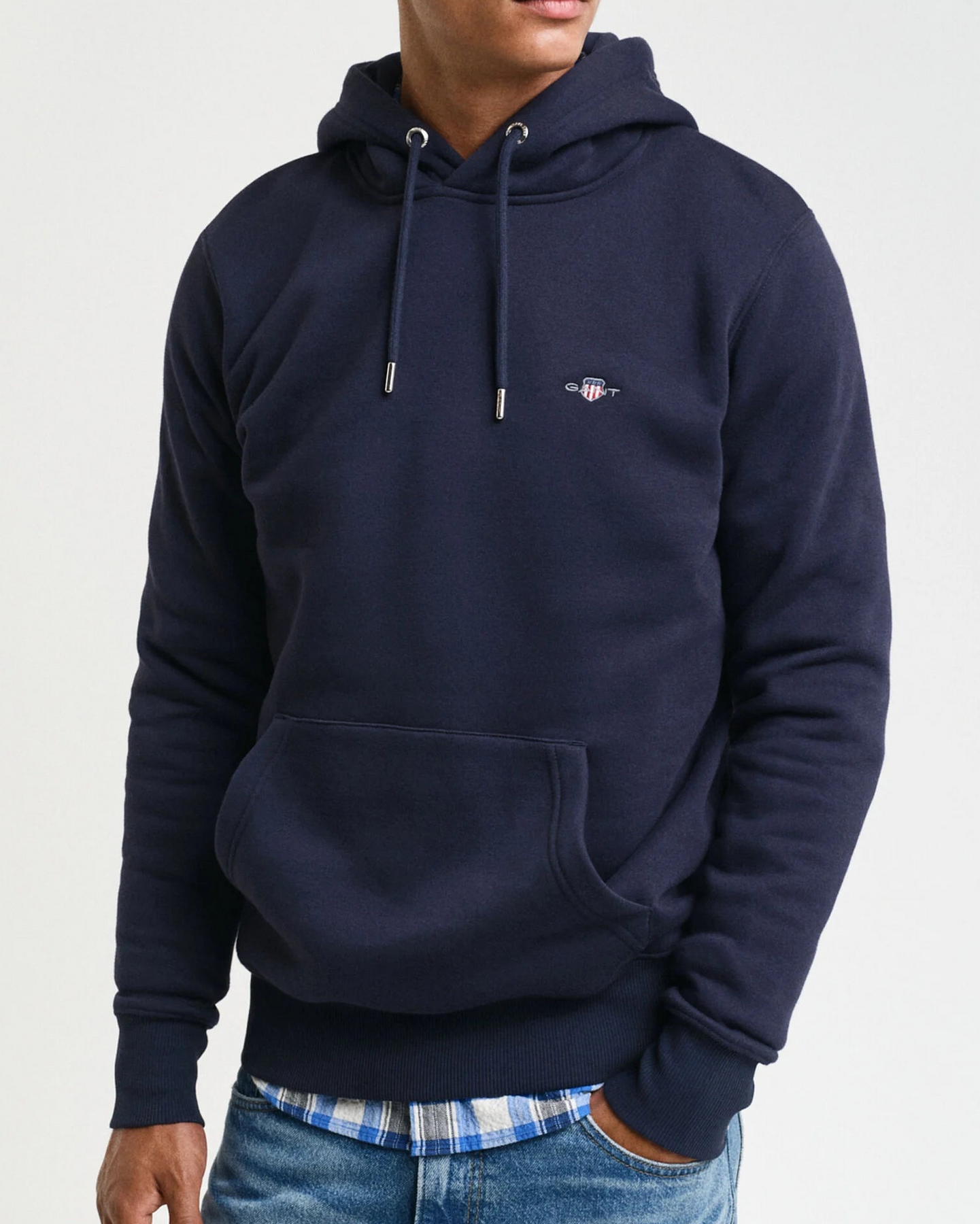 GANT Regular Shield Hoodie. Skön hoodie med magficka och silverfärgade öljetter från GANT med en liten sköldlogotyp broderad på bröstet i regular fit.