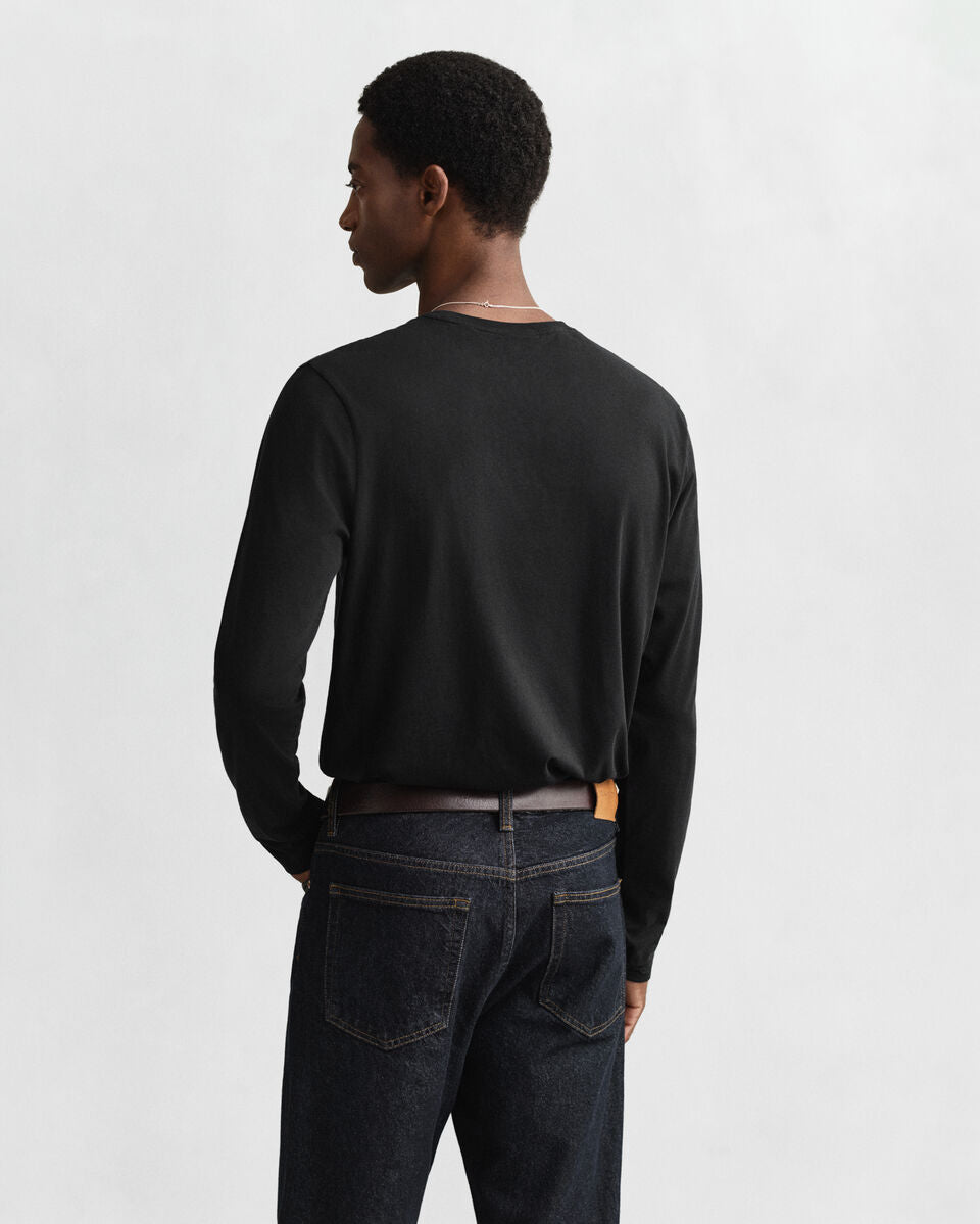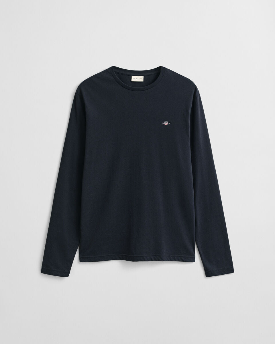 GANT Shield Långärmad T-Shirt. En klassisk långärmad t-shirt från GANT med den ikoniska broderade sköldlogotypen på bröstet. Denna tidlösa basmodell med ultrasmidig finish kombinerar komfort med GANTs karakteristiska preppy stil. Den mjuka bomullskvaliteten ger en behaglig känsla och modern passform.