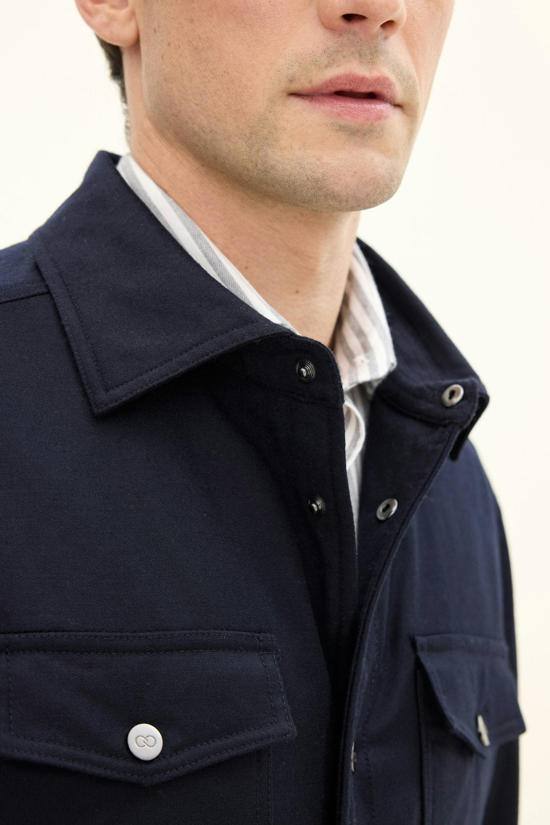 Regular Fit Vadderad Flanell Overshirt från Oscar Jacobson är en skjortjacka tillverkad i en mjuk ullblandning och skuren i regular fit erbjuder denna overshirt en följsam känsla med bibehållen elegans. Det avskalade uttrycket gör den till ett självklart val för både vardag och mer uppklädda sammanhang.